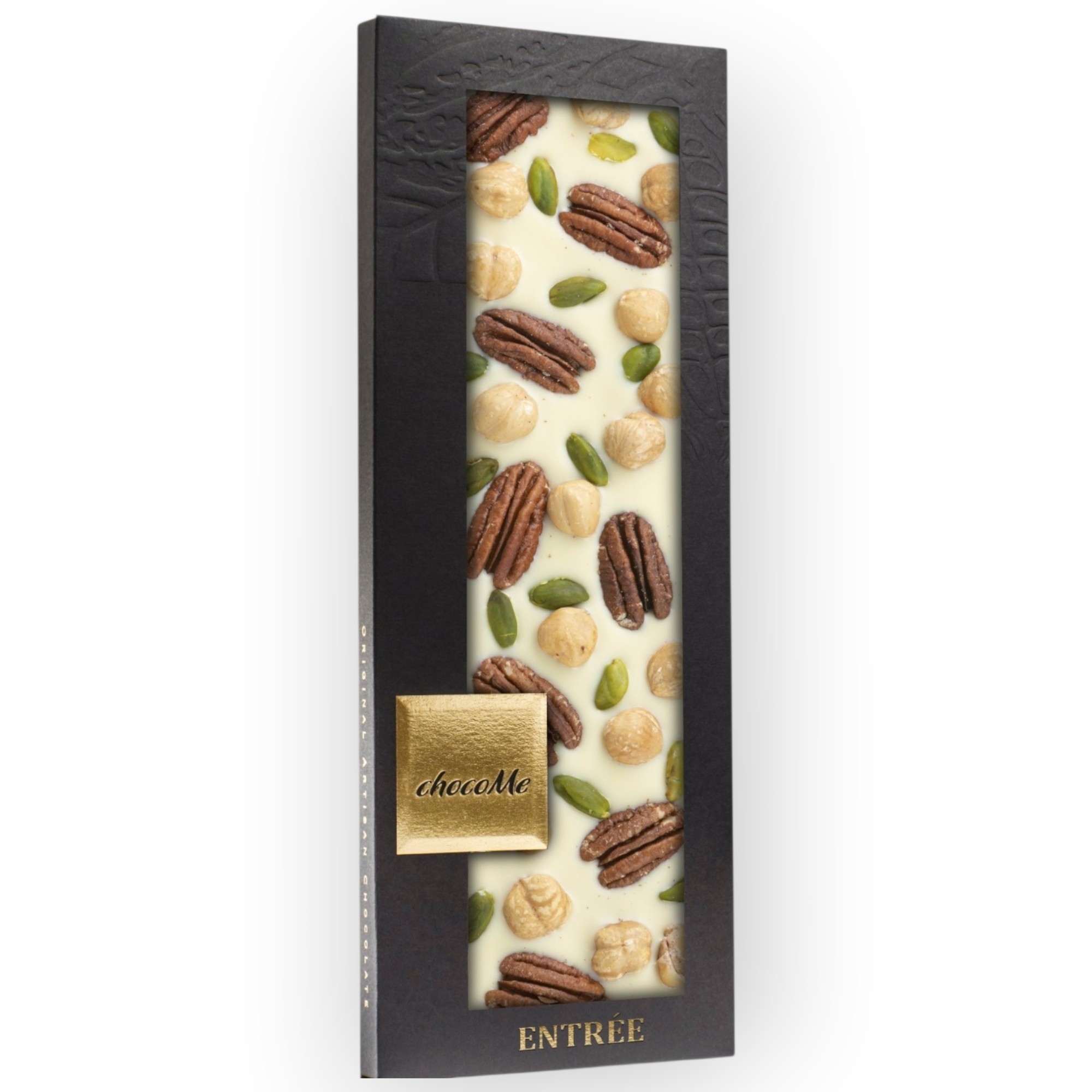 Fehércsokoládé pekándióval, mogyoróval, pisztáciával